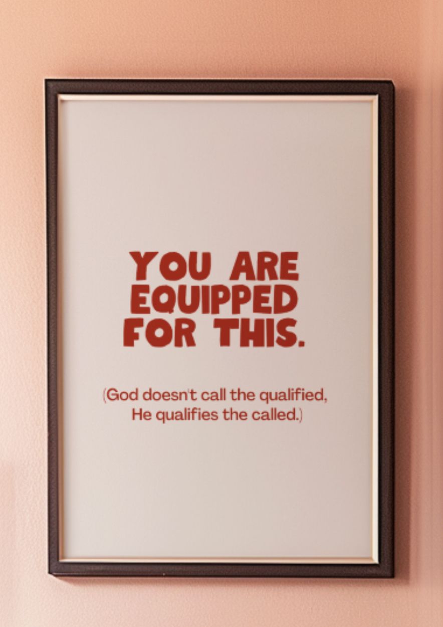 Bring a daily reminder of divine purpose into your home with this Christian wall art print. Featuring the empowering message, “You are equipped for this,” followed by the profound reminder that “God doesn’t call the qualified, He qualifies the called,” this piece is designed to build confidence and faith in any space.