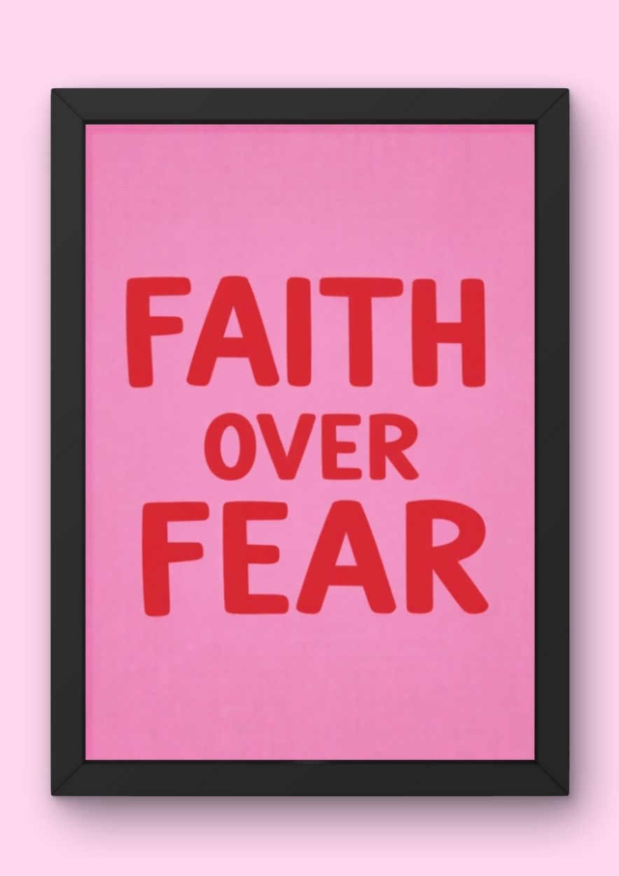 Bring a daily dose of courage and inspiration into your home with this striking Faith Over Fear wall art. Featuring a bold, modern typography design, this print uses a vibrant color palette of red lettering against a soft pink background. It is the perfect statement piece for anyone looking to incorporate motivational quotes into their living space.