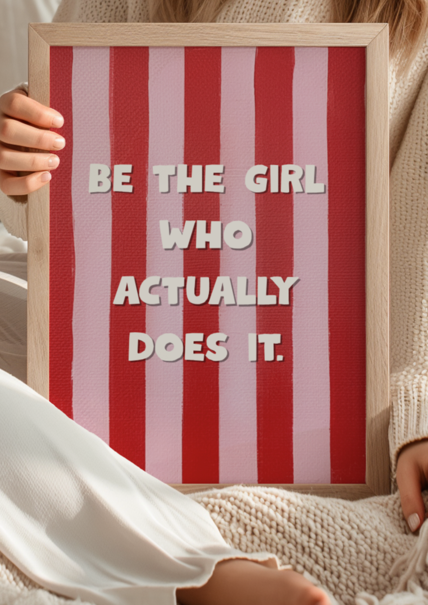 Unleash Your Inner Power with the “Be The Girl Who Actually Does It” Motivational Print.