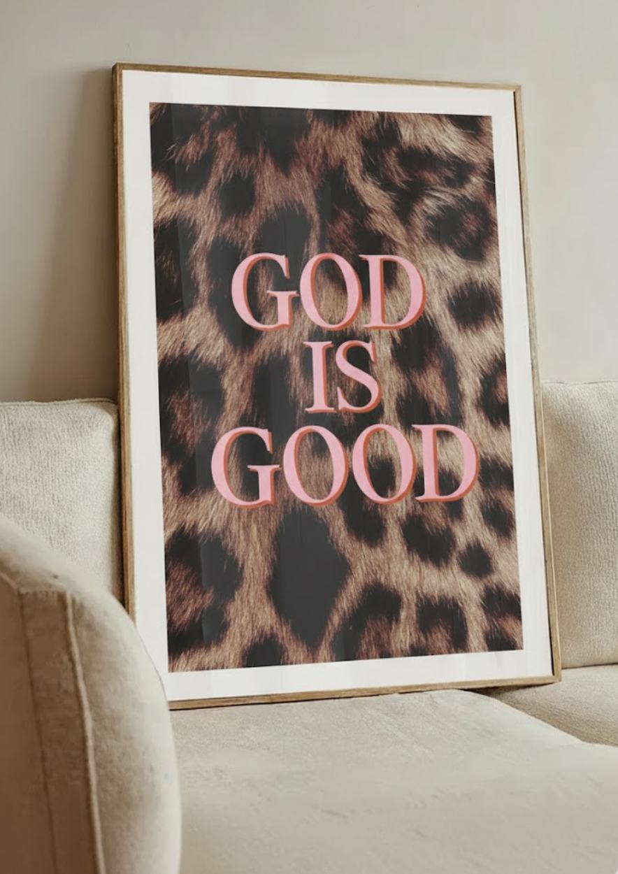 God Is Good Leopard Print Wall Art - Pink Typography Christian PosterGod Is Good Leopard Print Wall Art – Pink Typography Christian Poster