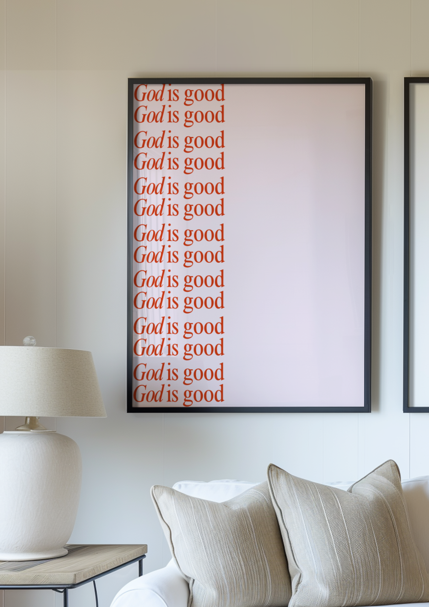God is Good Art Print – Repeated Motivational Quote Wall Art on Pink Background – Uplifting Christian Poster for Bedroom, Office, or Living Room Decor