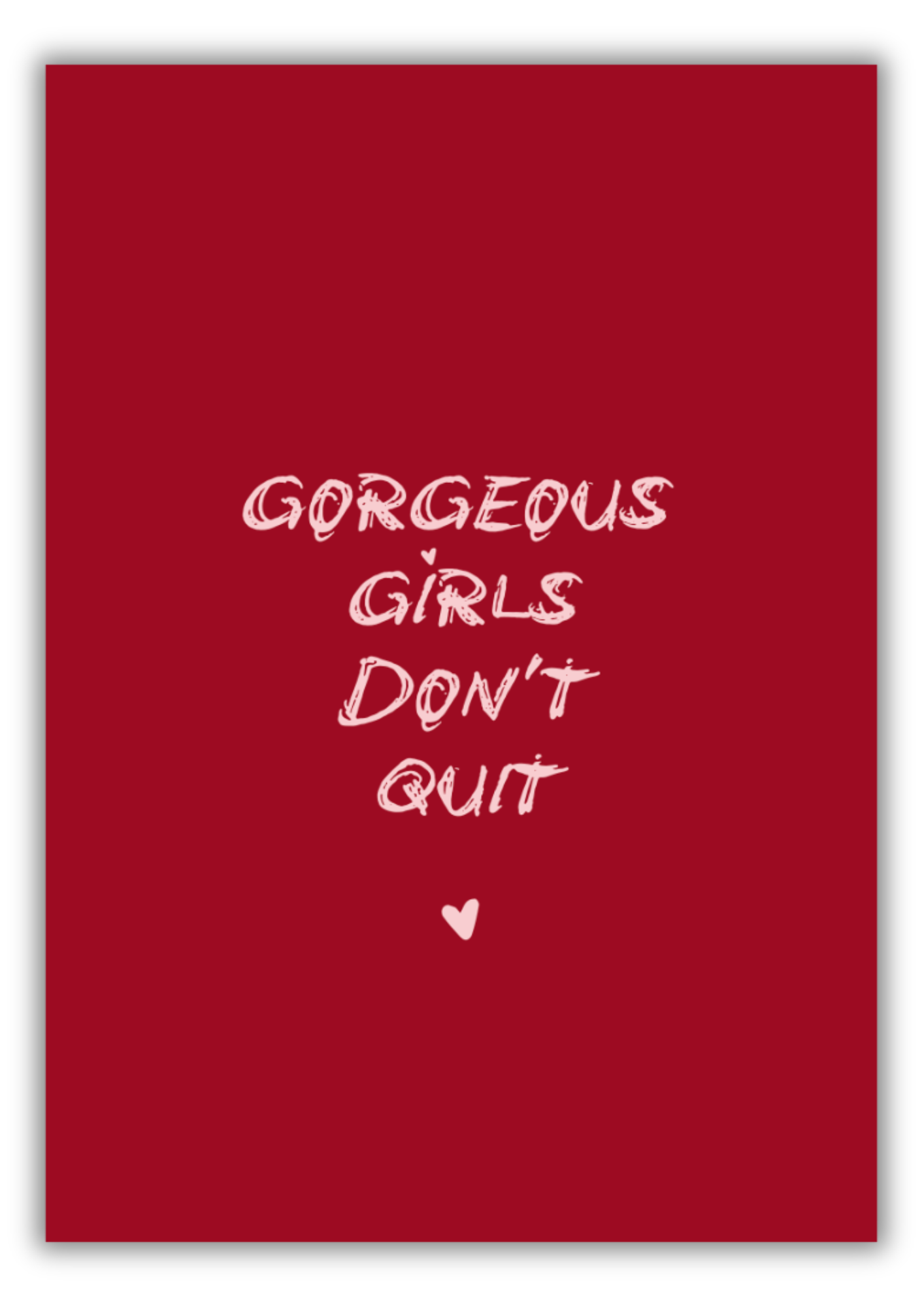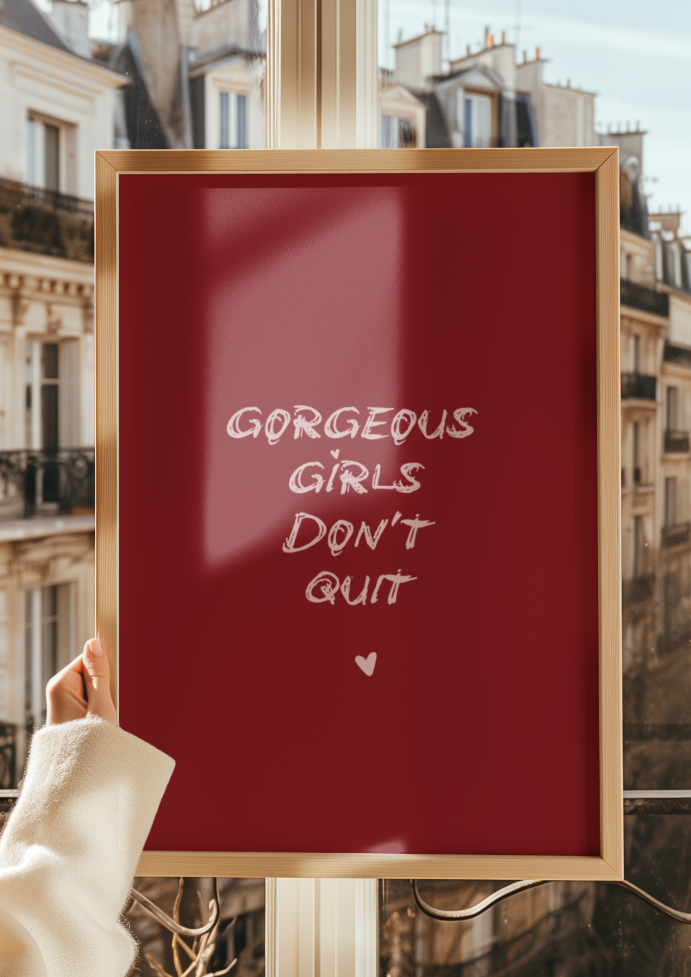Unleash your inner power with this “Gorgeous Girls Don’t Quit” typography print. With a bold burgandy background, this motivational art piece is perfect for bedrooms, home offices, dorm rooms, and beauty spaces. Whether you’re working on your goals or need a daily reminder of your strength, this print will inspire you to keep going.