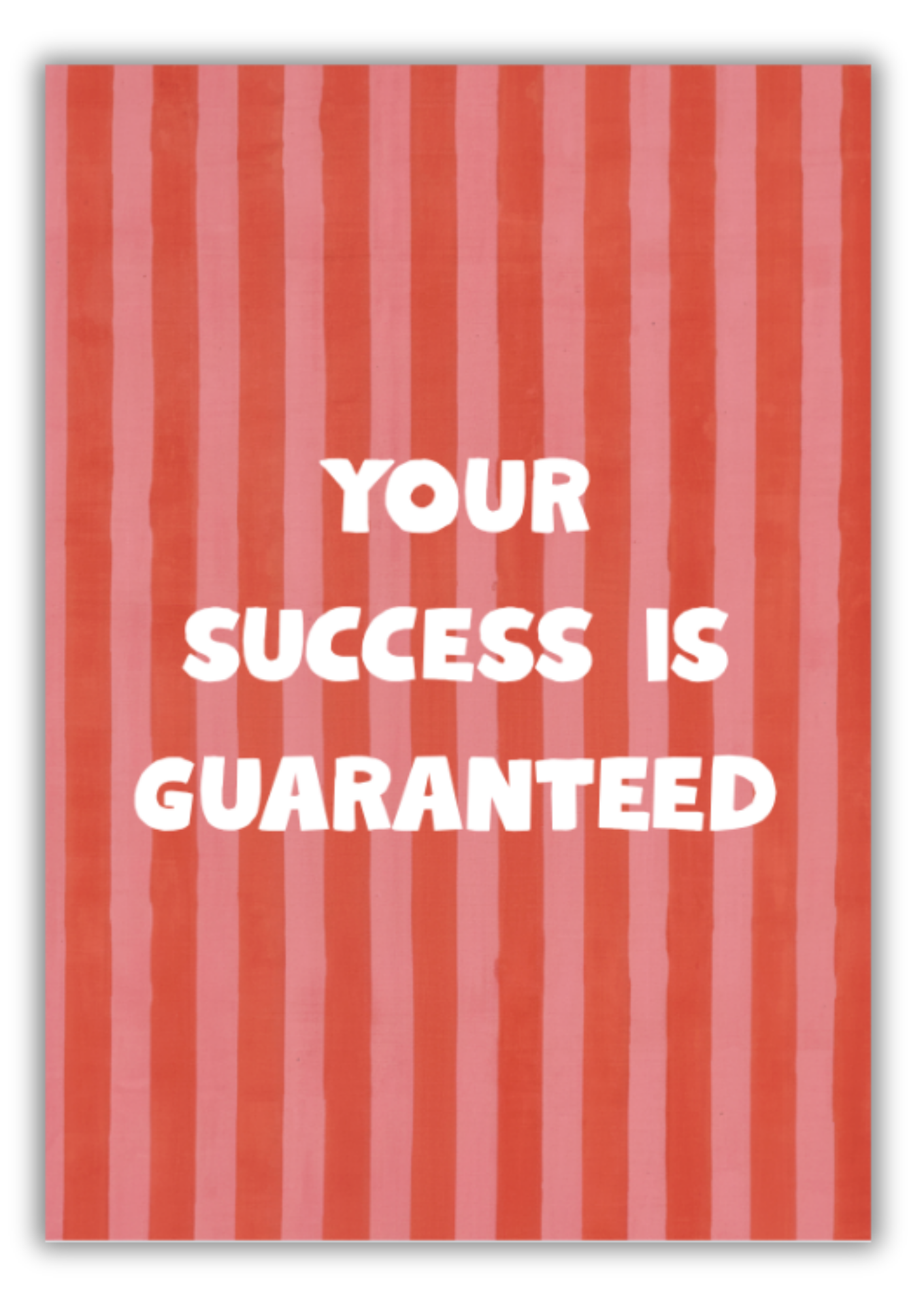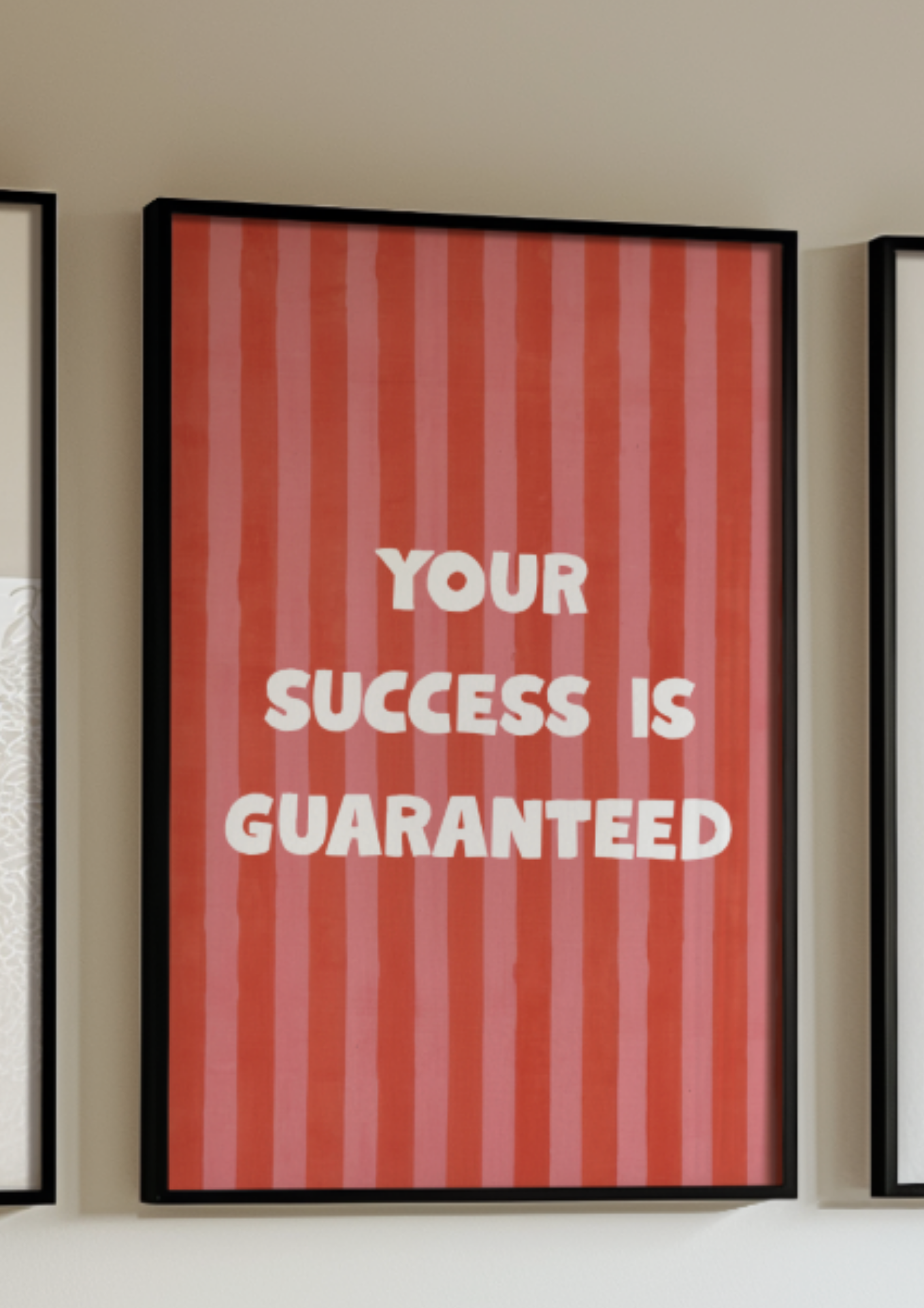Your Success Is Guaranteed” Motivational Wall Art Print | Bold Pink & Red Stripe Positive Affirmation Poster