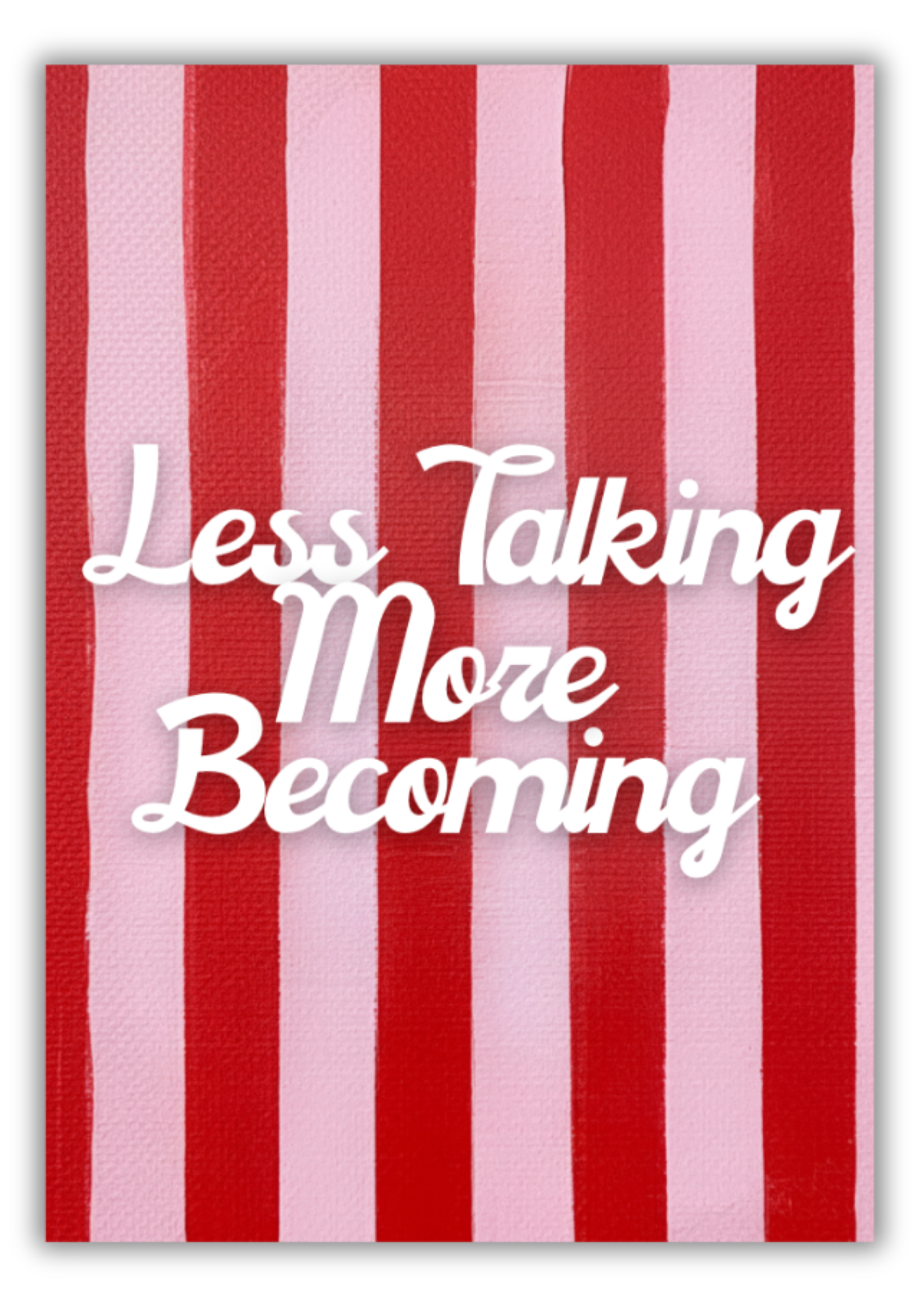 Transform your space with a bold reminder to prioritise embodiment over words. Our “Less Talking More Becoming” typography print features a striking high-contrast design, blending vibrant red and soft pink vertical stripes with elegant, white cursive lettering. This piece is designed for the dreamer, and anyone dedicated to their personal growth journey.