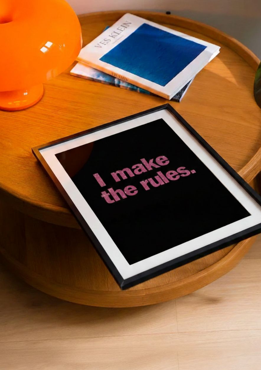 Define your space and your mindset with our “I Make The Rules” typography print. This striking piece features bold, textured pink lettering set against a deep matte black background, creating a high-contrast look that demands attention. Designed for those who lead with confidence, this modern wall art serves as a daily reminder of your own agency and power.