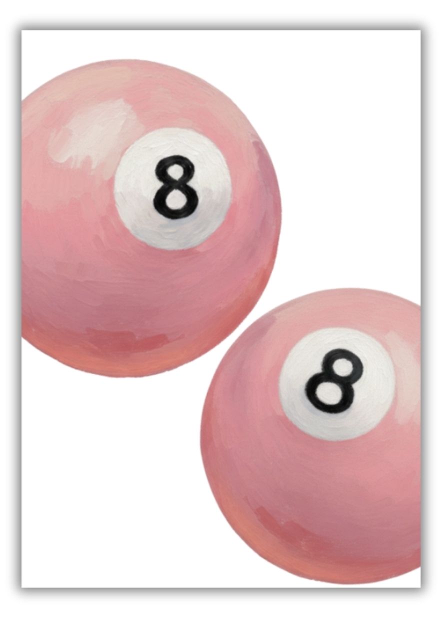 This piece blends the classic imagery of billiards with a contemporary color palette of soft pinks and bold blacks. It fits seamlessly into various interior styles, including Danish Pastel, Retro Modern, and Eclectic Chic. The clean white background ensures the vibrant pink tones pop, making it a focal point in your bedroom, office, or studio.