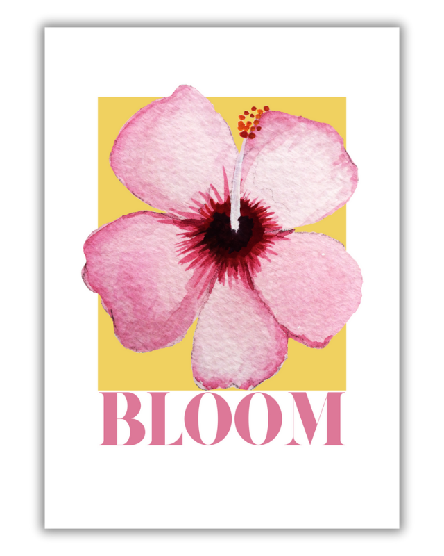 Inject a burst of tropical color and positive energy into your space with this stunning “BLOOM” Watercolor Hibiscus Pop Art Poster. This vibrant design features a beautifully rendered pink watercolor hibiscus flower set against a bold, sunny yellow background. Below the floral motif, the word “BLOOM” serves as an uplifting motivational message. This unique piece combines the organic beauty of botanical art with a modern pop art aesthetic, making it a perfect statement for a living room, office, or bedroom. Celebrate growth, color, and life with this cheerful and visually striking floral wall art print.