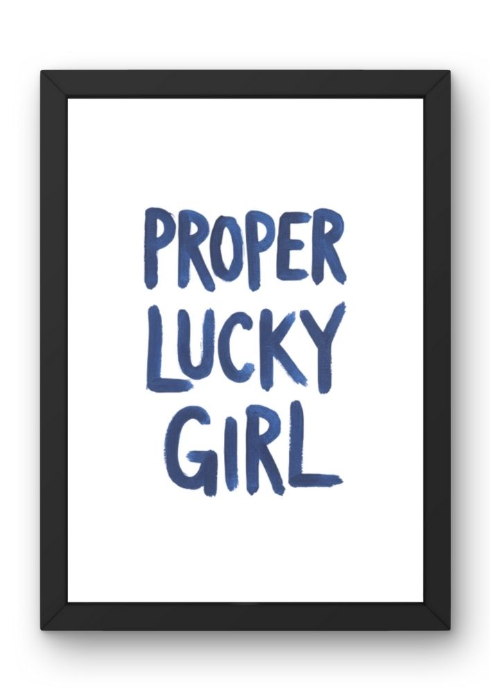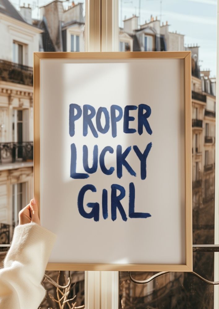 Embrace the power of positive thinking and manifestation with this bold Proper Lucky Girl wall art print. Featuring a striking cobalt blue hand-lettered font, this piece is designed for those who believe in the “Lucky Girl Syndrome” and want to surround themselves with high-vibe energy. The minimalist white background ensures the vibrant blue typography stands out, making it a perfect focal point for a gallery wall, bedroom, or home office.