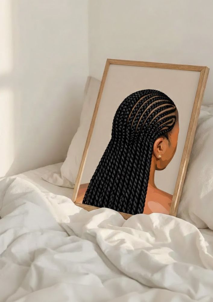 This stunning art print celebrates the intricate beauty and artistry of traditional braiding. Featuring a minimalist yet detailed illustration of a woman from the back, this piece highlights the geometric precision and cultural significance of braided hairstyles. The clean, warm-toned background makes it a versatile addition to any modern home, bringing a sense of calm and sophistication to your space.