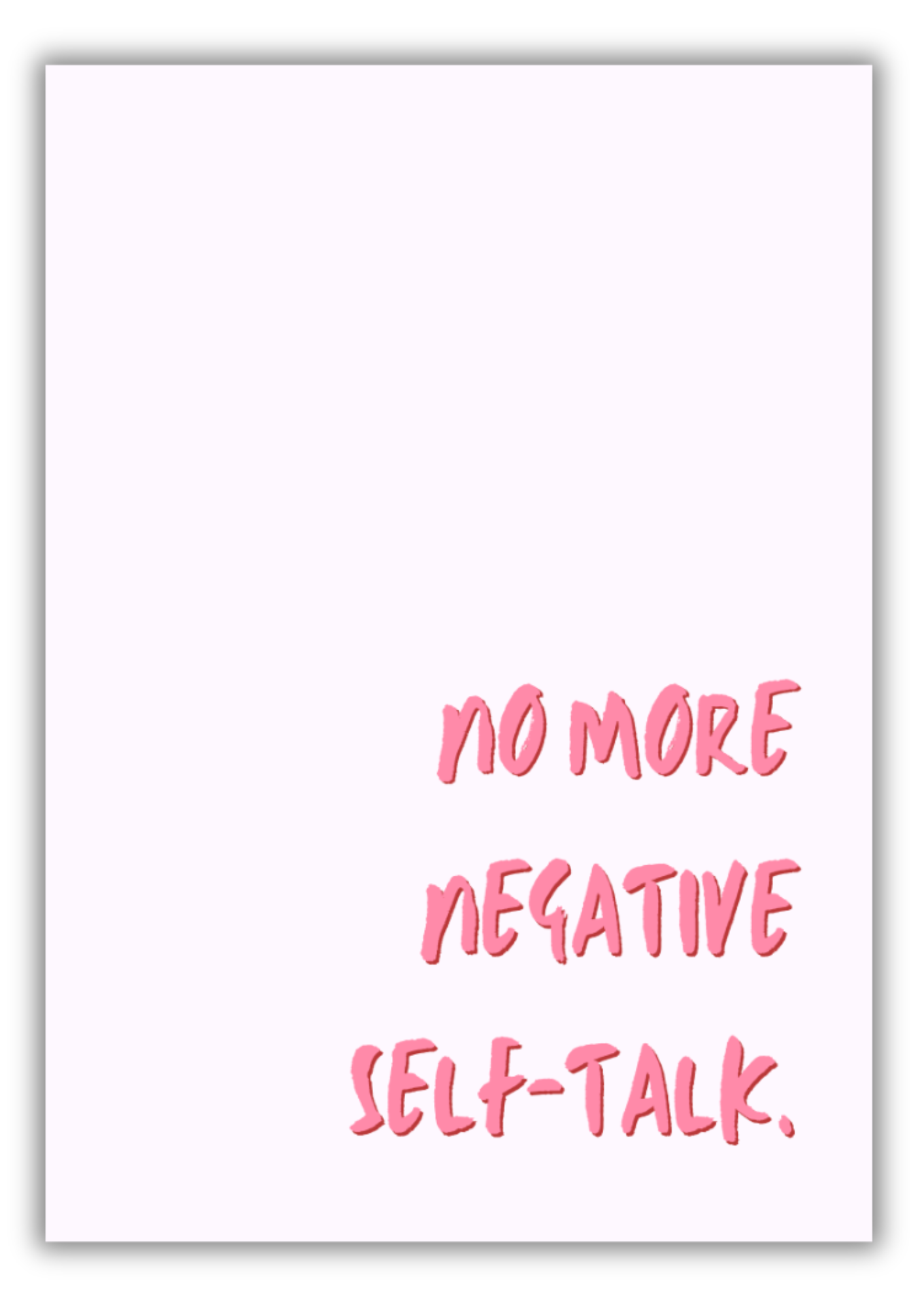 Transform your space with the power of positivity and self-love. This “No More Negative Self-Talk” typography print is designed to uplift, inspire, and remind you to speak kindly to yourself every day. Featuring bold pink lettering on a soft pink background, this modern and stylish print blends seamlessly into any bedroom, office, or self-care space.
