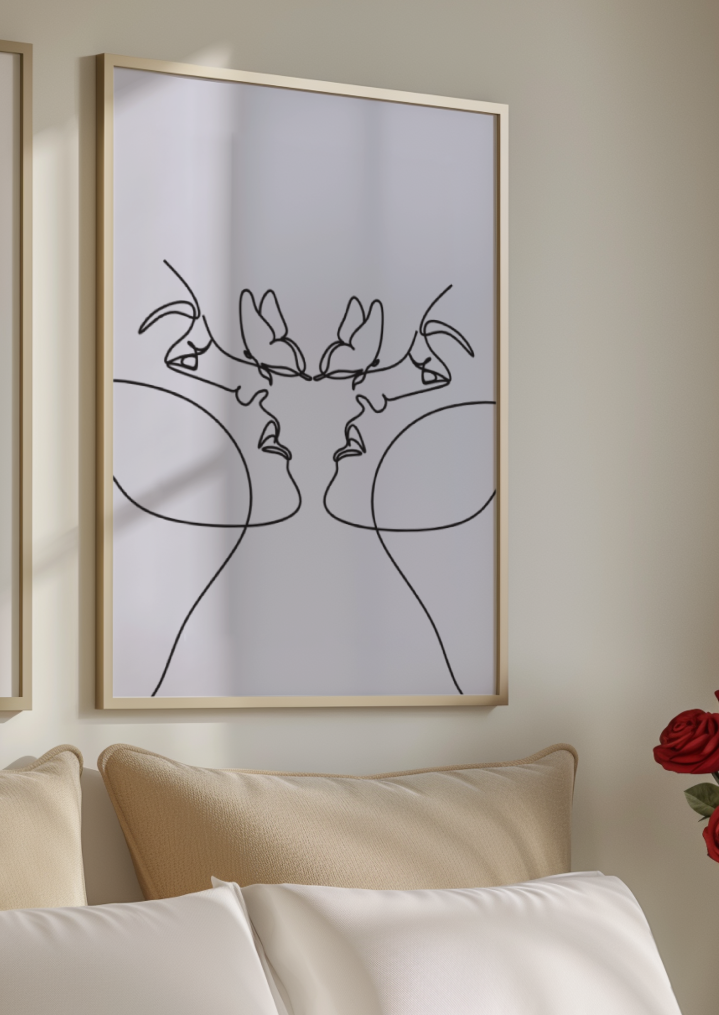 Embrace simplicity and modern elegance with this stunning Minimalist Line Art Print. This unique one line drawing features two faces softly meeting, with two abstract butterflies completing the composition, symbolizing connection and harmony. Perfect for adding a sophisticated, minimalist touch to your bedroom wall, living room, or gallery wall. The clean, single black line style is ideal for contemporary decor and complements Scandinavian or modern farmhouse aesthetics. Printed on premium paper , this piece delivers sharp definition and subtle shadow, making it a beautiful and meaningful addition to any modern interior.
