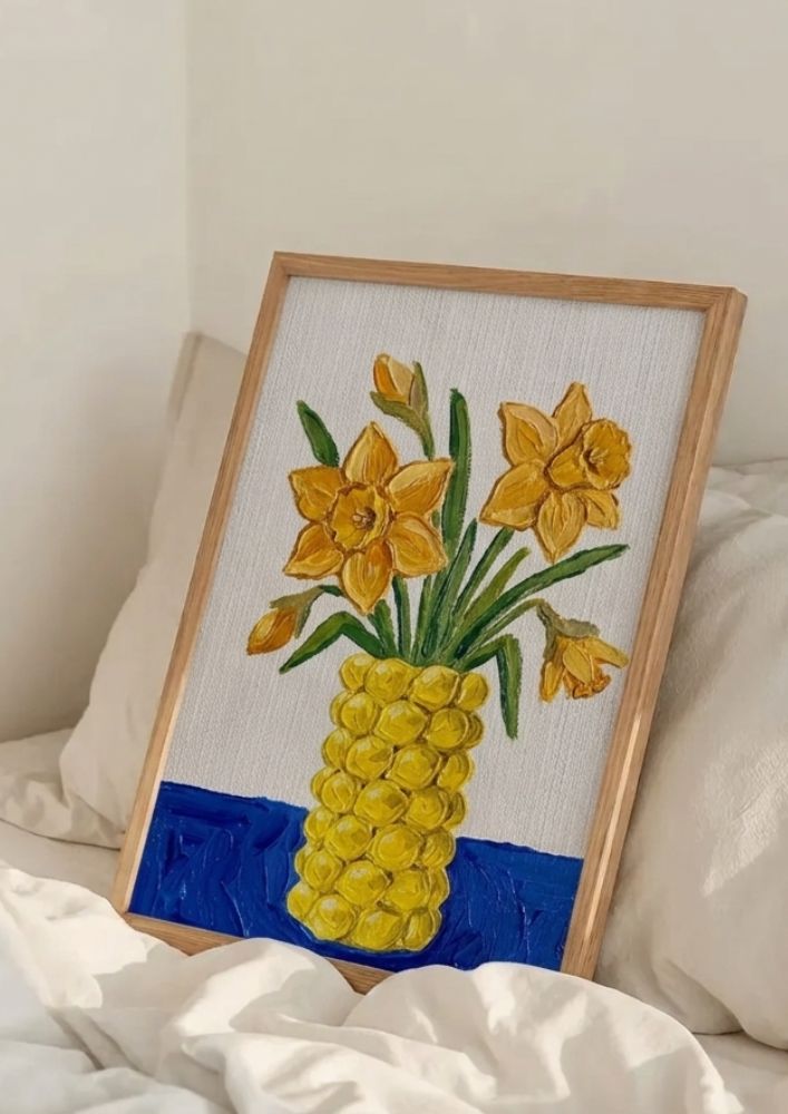 Add this charming daffodil still life art print to your collection and transform your walls with art that feels joyful, artistic, and effortlessly stylish.